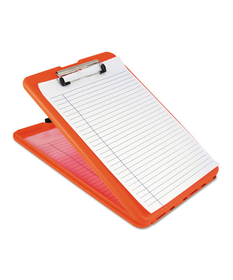 This durable plastic clipboard is perfect for students, teachers, parents, sales, utility, industrial, and office professionals. Slim design minimizes bulk and fits easily into a backpack, a sensible purse or a briefcase while providing plenty of internal storage space. Smooth-writing surface features a premium, low-profile clip that securely holds up to a 0.5" stack of paper. Made from durable polypropylene with a snap cover that keeps materials protected from impacts and the elements. Perfect for the mobile professional working away from their desk. It's a great tool for keeping project materials organized!