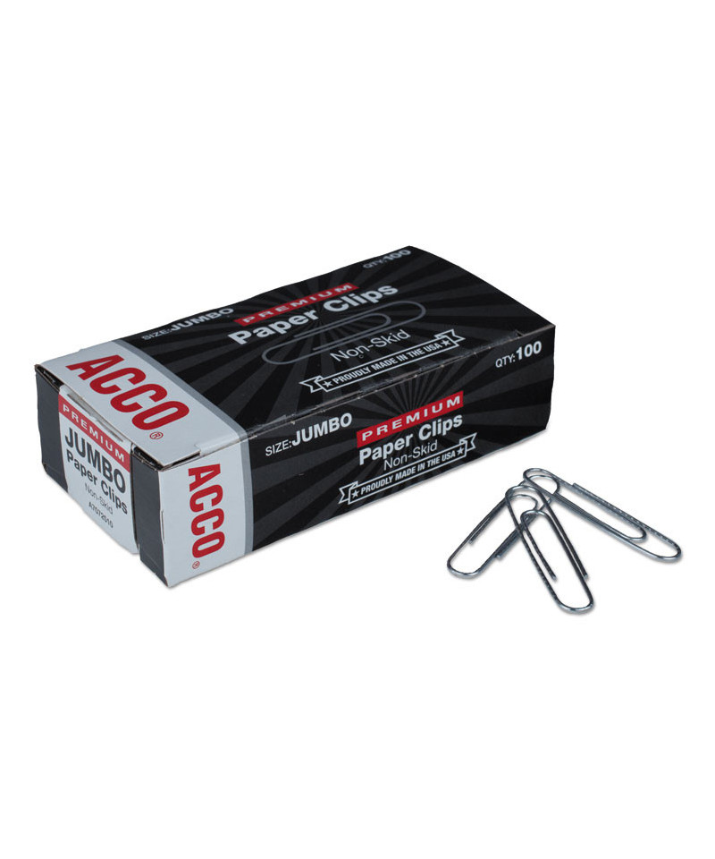 Premium Heavy-Gauge Wire Paper Clips, Jumbo, Nonskid, Silver, 100 Clips/Box, 10 Boxes/Pack