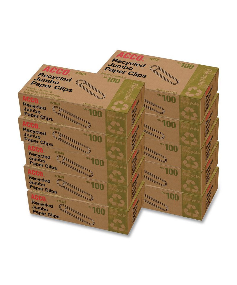 Recycled Paper Clips, Jumbo, Smooth, Silver, 100 Clips/Box, 10 Boxes/Pack