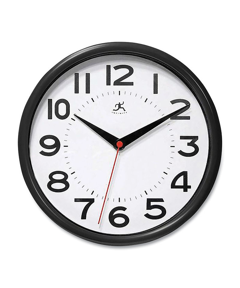 Experience accurate timekeeping, quiet operation, and effortless style with this resin analog wall clock. Featuring large black numbers on a sleek white face with silent-running hands, this battery-powered clock keeps time accurately with minimal noise and offers easy visibility from afar. Enriches office interiors with its understated design and stylish case.
