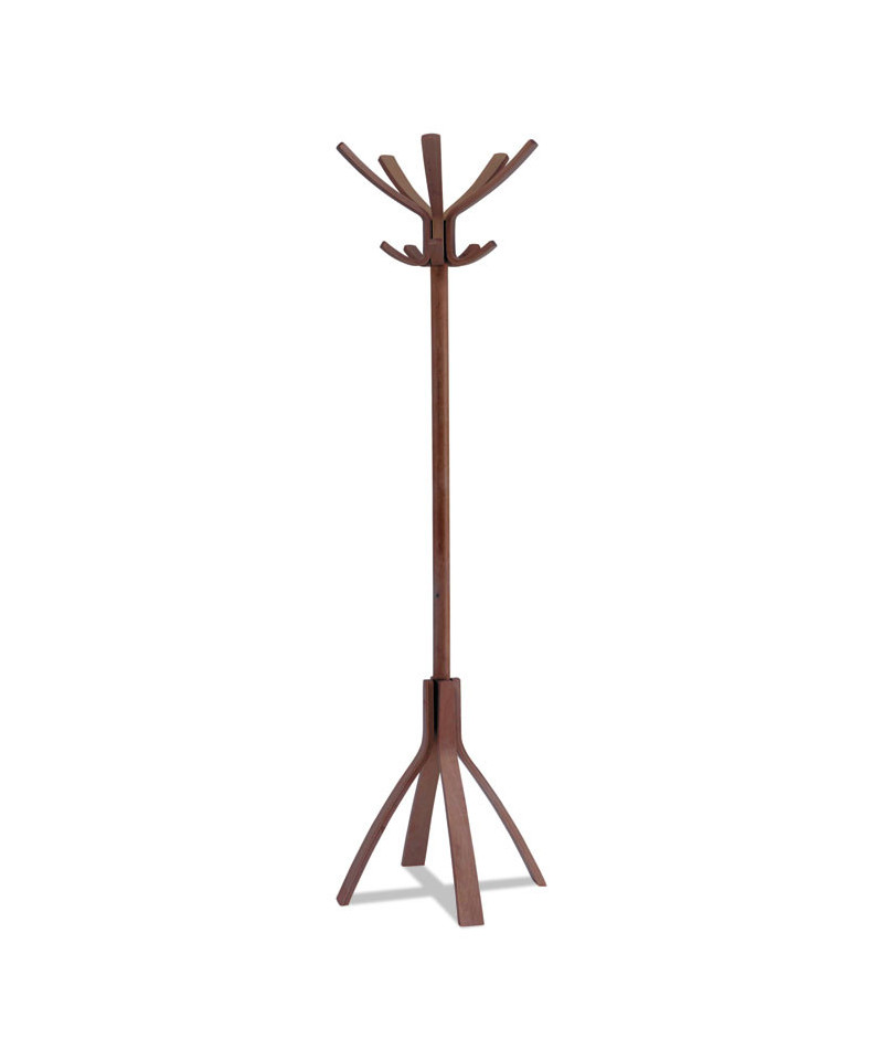 A classic design with contemporary flair. Five large coat pegs and five coat hooks on an easily-accessible rotating head. Large base with four feet for stability. Fast and easy tool-free assembly.