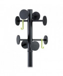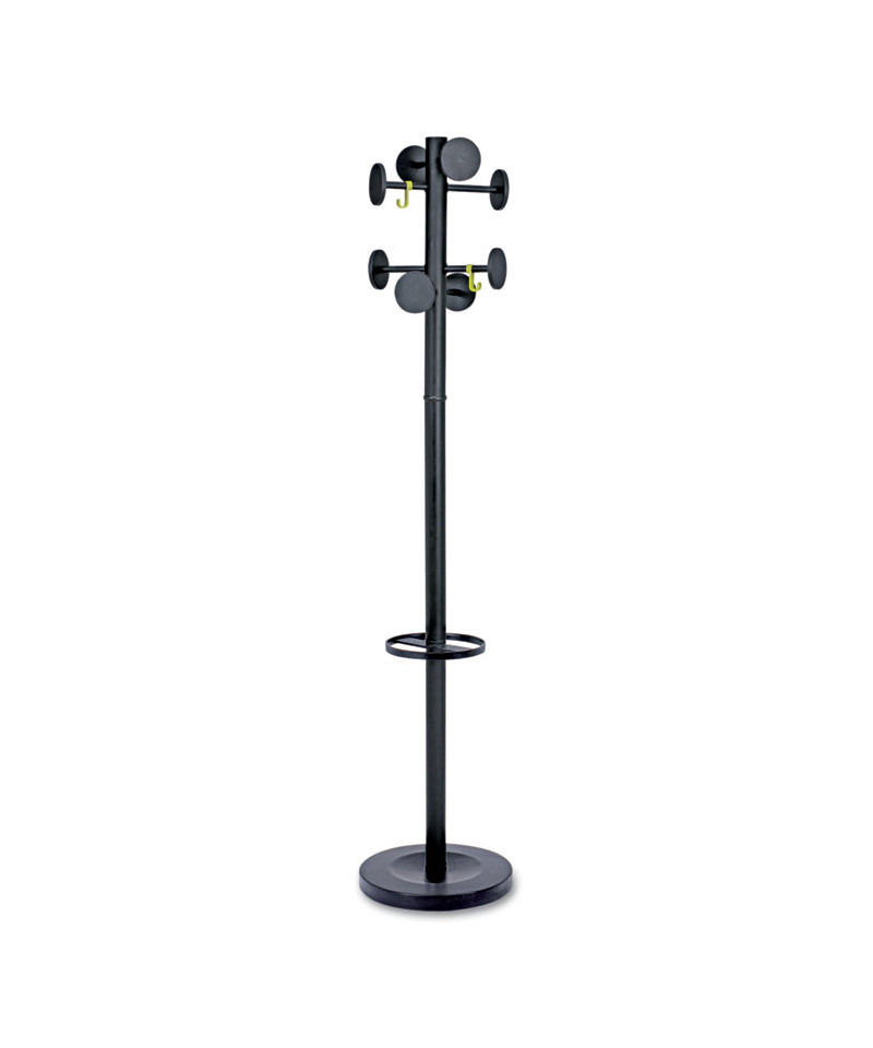 High-capacity coat rack. Kind to clothes thanks to rounded tips on coat pegs. Pegs are horizontally adjustable so clothes do not stack on each other. Umbrella holder can hold up to seven umbrellas. Great stability thanks to weighted 5-kilogram base. Powder coated black finish.