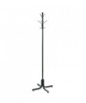 Free-standing metal Coat Rack features four double hooks to securely hold up to eight garments. Steel ball tip hooks help protect garments.