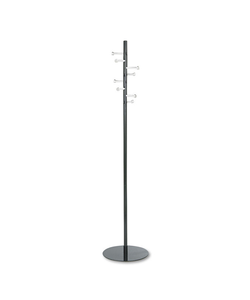 The Spiral Nail Head Coat Rack combines elegance and practicality, making it a standout addition to any home or office space. Featuring a sleek black and silver design with brushed aluminum and nail head coat hooks, this rack offers both style and functionality. The unique nail head details not only enhance the modern aesthetic but also help protect your garments by securely holding them in place. The sturdy steel base, with a 15" diameter, ensures stability and durability, preventing tipping even when fully loaded. Perfect for keeping coats, hats, and bags organized, the Spiral Nail Head Coat Rack is the ideal solution for maintaining a neat, professional, and stylish environment in any room.