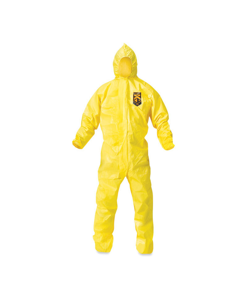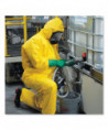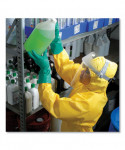 KleenGuard™ Personal Protective Equipment (PPE) enables rather than inhibits allowing for maximum productivity and safety for you and your employees. If you or your employees are working in an environment where liquid and dry chemicals are present, you need the right protection equipment. You can trust the KleenGuard™ A70 Chemical Spray Protection Coveralls for comfort and protection. They are made of a 1.5 mil polyethylene-coated fabric, which is resistant to many water-based liquids, greases and oils and liquid chemical splashes. They feature a wick-away lining for enhanced comfort, a liquid-resistant, extra-long zipper and a taped, sealable zipper flap. The seamless front gives the wearer more protection in the primary exposure area, and the REFLEX Coverall Design offers excellent fit and freedom of movement. This model comes with a hood, zipper front (with storm flap), and elastic wrists and ankles. Making the right Personal Protection choice is difficult. Perform with distinction with KleenGuard™ Personal Protective Equipment (PPE).