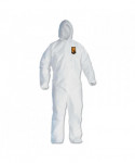 KleenGuard™ Personal Protective Equipment (PPE) enables rather than inhibits allowing for maximum productivity and safety for you and your employees. When your workers are in nonstop contact with liquid splashes and particles, KleenGuard™ A40 Liquid and Particle Protection Coveralls are a great addition to offer your team comfortable protective clothing. Features to provide more protection include the seamless front (for primary exposure area) and 1 inch zipper flap. They feature REFLEX design, which offers excellent fit and comfort (with elastic in the back) and freedom of movement. Made of breathable, microporous film to keep out debris, non-hazardous liquid chemicals and dry particulates, the KleenGuard™ A40 material gives your employees a better liquid barrier and a better particulate barrier than the leading competitor. These coveralls with hood pass NFPA 99 for antistatic materials, and pass ASTM F1670 testing for penetration of blood and bodily fluids. Popular industries using this product include liquid handling, aviation, pharmaceutical manufacturing, general manufacturing and so much more. Making the right Personal Protection choice is difficult. Perform with distinction with KleenGuard™ Personal Protective Equipment (PPE).