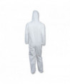 These liquid and particle protection coveralls are made of microporous film laminate with zipper front, flap over zipper and elastic in the back for improved protection.