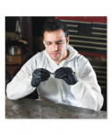 Patented Reflex* design minimizes the potential for rips and tears while providing more chest room than average. The material is strong and abrasion resistant, and filters out many water-based liquids and dry particles.