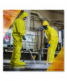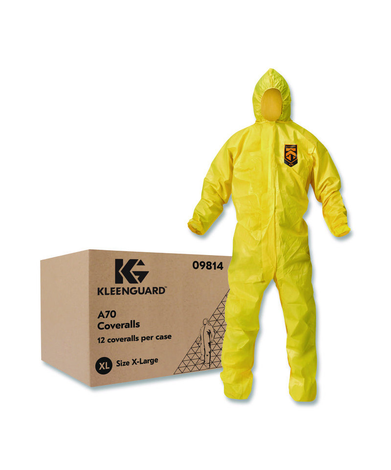 KleenGuard™ Personal Protective Equipment (PPE) enables rather than inhibits allowing for maximum productivity and safety for you and your employees. If you or your employees are working in an environment where liquid and dry chemicals are present, you need the right protection equipment. You can trust the KleenGuard™ A70 Chemical Spray Protection Coveralls for comfort and protection. They are made of a 1.5 mil polyethylene-coated fabric, which is resistant to many water-based liquids, greases and oils and liquid chemical splashes. They feature a wick-away lining for enhanced comfort, a liquid-resistant, extra-long zipper and a taped, sealable zipper flap. The seamless front gives the wearer more protection in the primary exposure area, and the REFLEX Coverall Design offers excellent fit and freedom of movement. This model comes with a hood, zipper front (with storm flap), and elastic wrists and ankles. Making the right Personal Protection choice is difficult. Perform with distinction with KleenGuard™ Personal Protective Equipment (PPE).
