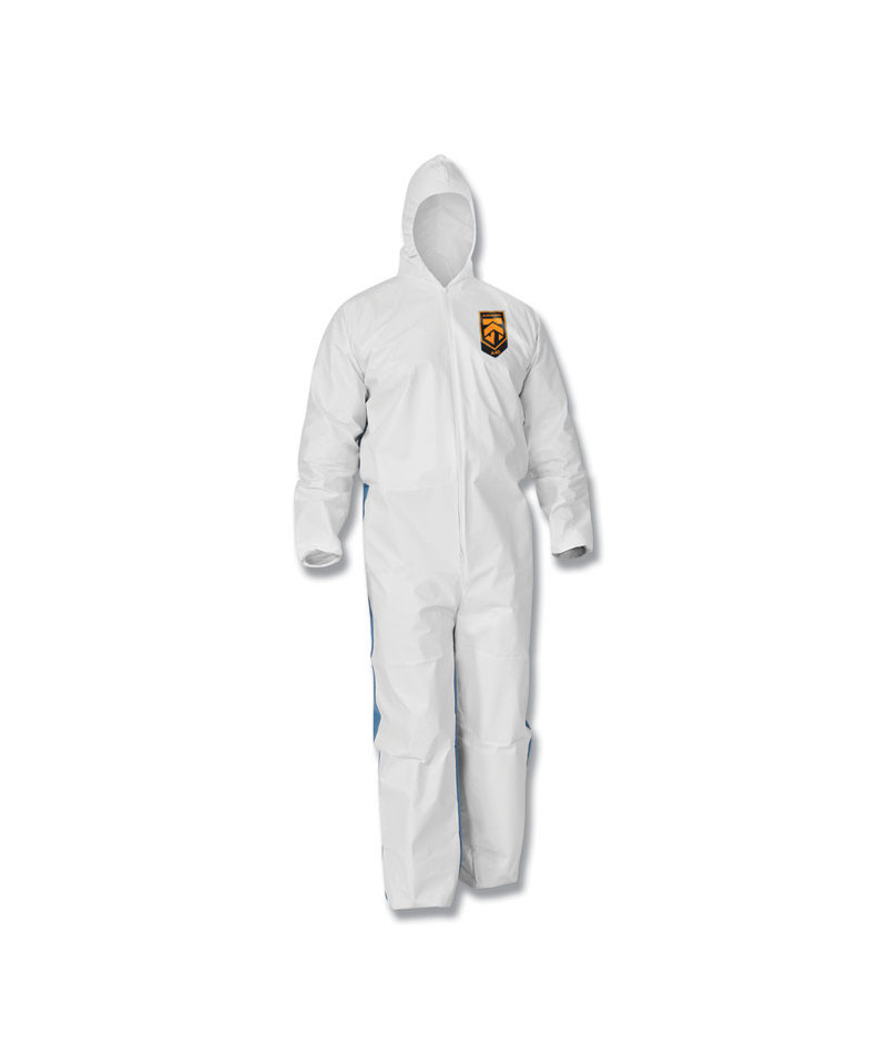 A35 Liquid and Particle Protection Coveralls, Zipper Front, Hooded, Elastic Wrists and Ankles, Large, White, 25/Carton