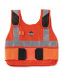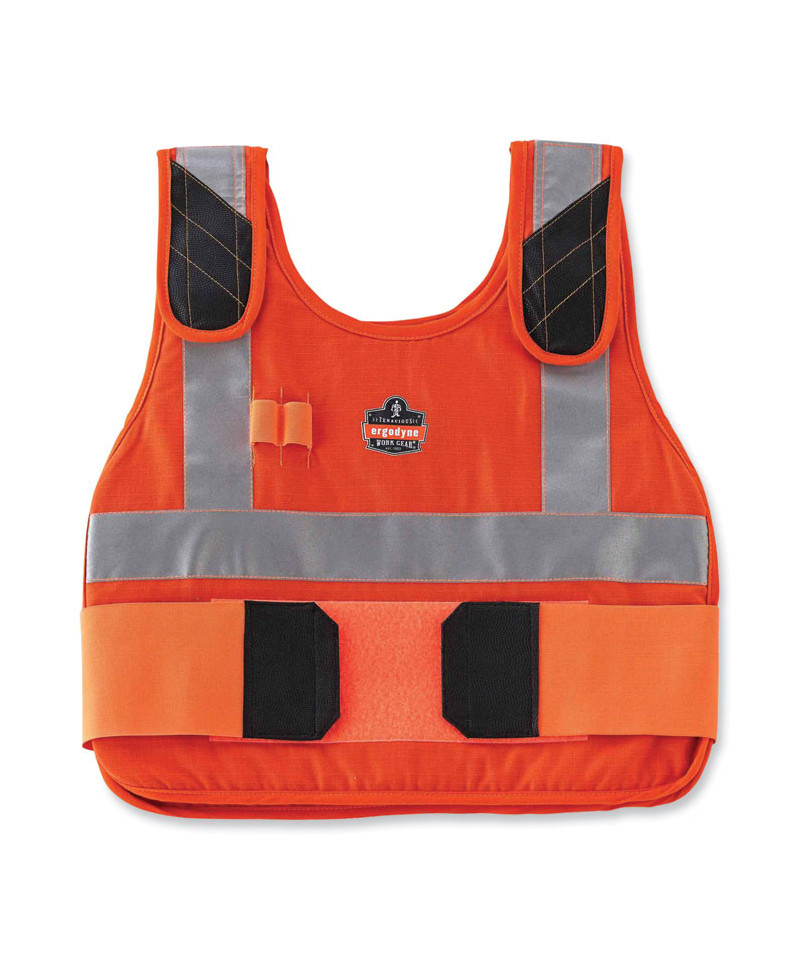 The Chill-Its 6225 Premium Phase Change Cooling Vest is made to house phase change cooling packs to help keep workers cooler, safer and more productive. The phase change cooling material maintains a 64°F (18°C) temperature for up to four hours when activated. The vest is made of a modacrylic cotton blend flame-resistant fabric which meets ASTMF1506 requirements as well as classified to NFPA (CAT1). The adjustable hook-and-loop closures at the shoulders and waist provide a customized and comfortable fit. Keep your writing utensils handy with two pen slots on the right-side of the vest.