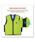 The Chill-Its 6665 Evaporative Cooling Vest is made with an advanced polymer-embedded fabric to provide workers with immediate core cooling relief from the heat. This lightweight cooling vest is made of comfortable and durable quilted nylon exterior with mesh side panels for ventilation and stretch. Wear this body cooling vest over a t-shirt. A water-repellant liner keeps the interior of the vest as dry as possible when activated, though wearers should expect to feel some dampness/wetness. Evaporative cooling technologies such as embedded polymers are a simple, effective and comfortable solution for heat stress prevention. Similar to how sweat cools the body, evaporative technologies use an external water source to draw heat away helping to regulate body temperature while providing cool relief. In order to activate, soak in water for two to five minutes. The embedded polymers will retain water for up to four hours of cooling relief. Hand wash as needed and hang to dry.