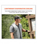 Advanced polymer-embedded fabric provides workers with immediate core cooling relief from the heat. This lightweight cooling vest is made of comfortable and durable quilted nylon exterior with mesh side panels for ventilation and stretch. Wear this body cooling vest over a t-shirt. A water-repellant liner keeps the interior of the vest as dry as possible when activated, though wearers should expect to feel some dampness/wetness. Evaporative cooling technologies such as embedded polymers are a simple, effective and comfortable solution for heat stress prevention. Similar to how sweat cools the body, evaporative technologies use an external water source to draw heat away helping to regulate body temperature while providing cool relief. In order to activate, soak in water for two to five min