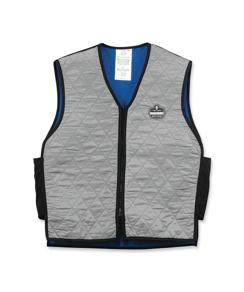 The Chill-Its 6665 Evaporative Cooling Vest is made with an advanced polymer-embedded fabric to provide workers with immediate core cooling relief from the heat. This lightweight cooling vest is made of comfortable and durable quilted nylon exterior with mesh side panels for ventilation and stretch. Wear this body cooling vest over a t-shirt. A water-repellant liner keeps the interior of the vest as dry as possible when activated, though wearers should expect to feel some dampness/wetness. Evaporative cooling technologies such as embedded polymers are a simple, effective and comfortable solution for heat stress prevention. Similar to how sweat cools the body, evaporative technologies use an external water source to draw heat away helping to regulate body temperature while providing cool relief. In order to activate, soak in water for two to five minutes. The embedded polymers will retain water for up to four hours of cooling relief. Hand wash as needed and hang to dry.