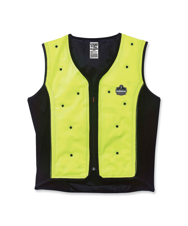 The Chill-Its 6685 Dry Evaporative Cooling Vest offers immediate dry cooling relief that lasts up to three days. The exclusive dry evaporative technology keeps the wearer completely dry and comfortable as opposed to other cooling vests on the market that require soaking. Constructed with high-visibility industrial grade quality nylon to perform in the toughest conditions. Designed with front zipper closure, and the mesh side panels provide additional ventilation and stretch for a comfortable fit. This lightweight cooling vest is machine washable and can be reused over and over. To activate, simply fill the vest with 13 oz to 20 oz water for immediate and long-lasting cooling relief. Not to be worn underneath thick layers of clothing, this vest needs airflow in order to activate and for the evaporation process to take place. Do not clean the inside reservoir. Cooling material is treated with an antimicrobial that inhibits mold growth on the product.