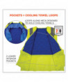 The Chill-Its 6668 Hi-Vis Safety Cooling Vest is made with advanced polymer-embedded technology that quickly activates with water to provide hours of core cooling relief. This cooling vest consists of three layers: 1) an ANSI/ISEA 107 Type R, Class 2 high visibility shell, 2) polymer-embedded mid-layer and 3) a water-repellent liner to help keep wearers dry. This comfortable cooling vest is designed to be lighter and less bulky than most cooling vests on the market. Breathable mesh along the bottom of the vest reduces weight, enhances airflow and prevents excess water from dripping onto clothing. Loops along the interior of the neckline allow wearers to insert cooling towels for additional cooling relief along the neck. Also features two lower interior pockets for storage, and a zippered closure for easy on/off.