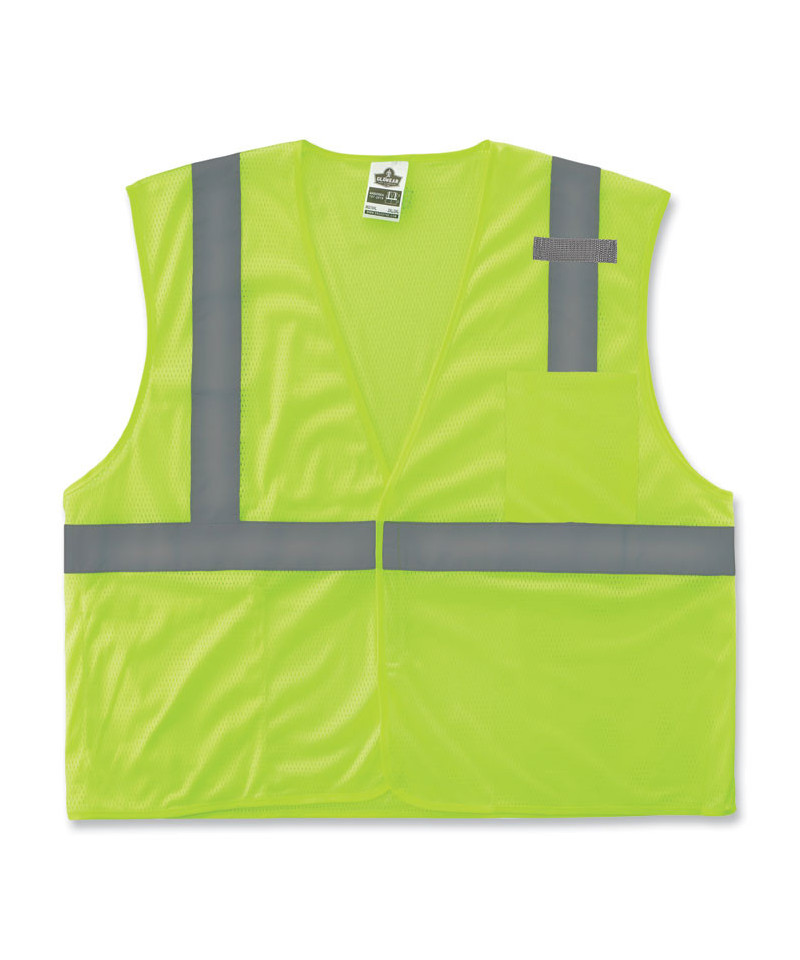 The GloWear 8210HL Mesh Hi-Vis Safety Vest is a ANSI 107 Type R, Class 2 compliant economy vest made of 3.3 oz polyester mesh. This hi-vis vest features 2 reflective tape, a lower interior pocket, an exterior pocket and a single mic tab. A hook and loop closure makes for easy on and off. This vest is available in dual sizes for a loose fit for wear over sweatshirts or jackets. This reflective safety vest is ideal for anyone requiring Type R, Class 2 apparel, including those working in road construction, baggage handling and for municipalities.