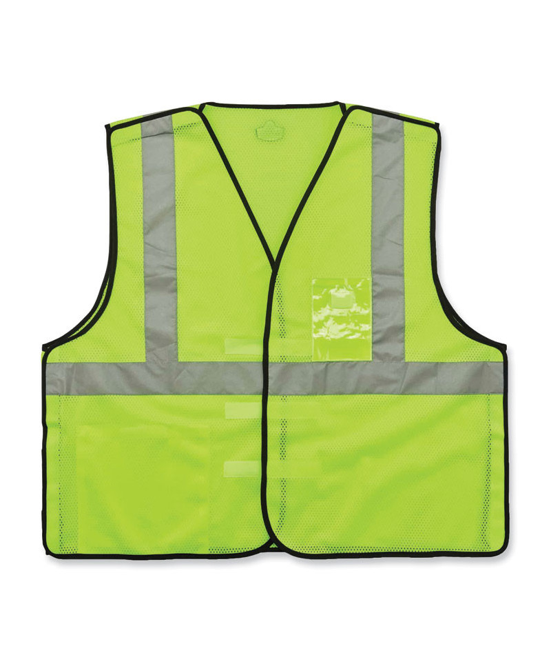Class 2 Breakaway Mesh Vest with ID Badge Holder offers a hook and loop front, shoulders and sides. Features a clear ID badge holder pocket on left chest for identification.