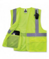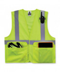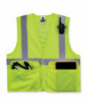 Class 2 standard mesh fabric vest with hook and loop closure. ANSI-compliant polyester mesh (3.3 oz). 2 ANSI-compliant reflective. One inside, two outside pockets. Single radio mic tab.