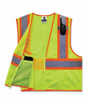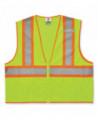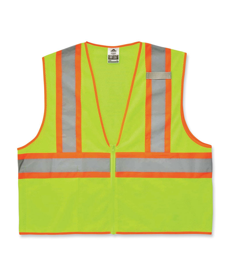 Class 2 economy two-tone mesh fabric vest with zipper closure. See the study, see the person. Two-tone works. ANSI-compliant polyester mesh (3.3 oz). 2 ANSI-compliant reflective. Reflective set on 4.5 contrasting color background. One inside pocket.