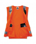Pockets, pockets, pockets! Vest with solid front, mesh back and zipper closure. Two inside and four outside pockets. One large zippered rear document/tablet pocket. Features 2 ANSI-compliant 3M Scotchlite Reflective. Dual radio mic tabs.