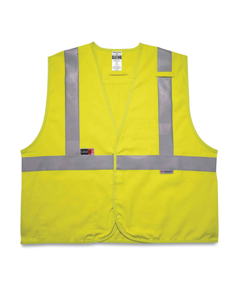 Dual FR-compliant to NFPA 2112 and NFPA 70E for protection against flash fire and arc flash hazards. Designed to be worn as part of a complete FR garment system, it is tested and certified to an ATPV 6.6 cal/cm2. Flame-resistant safety vest is made with breathable, moisture-wicking and ANSI-compliant 5.5 oz Westex by Milliken DH material for full protection from flash fire and arc flash. Reflective vest is a Type R Class 2 garment and features 2 3M Scotchlite FR reflective for heightened visibility at night or in low light environments. Features two convenient interior pockets, one open top to fit cell phones, badges, and more and one dual pen pocket. A single flame-resistant radio mic tab and flame-resistant hook and loop front closure designed for easy on/off. This FR high-visibility cl