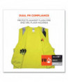 The GloWear 8261FRHL Hi-Vis FR Class 2 Safety Vest is dual FR-compliant to NFPA 2112 and NFPA 70E for protection against flash fire and arc flash hazards. Designed to be worn as part of a complete FR garment system, it is tested and certified to an ATPV 6.6 cal/cm2. Flame-resistant safety vest is made with breathable, moisture-wicking and ANSI-compliant 5.5 oz Westex by Milliken DH material for full protection from flash fire and arc flash. Reflective vest is a Type R Class 2 garment and features 2 3M Scotchlite FR reflective for heightened visibility at night or in low light environments. Features two convenient interior pockets, one open top to fit cell phones, badges, and more and one dual pen pocket. A single flame-resistant radio mic tab and flame-resistant hook and loop front closure designed for easy on/off. This FR high-visibility clothing is ideal PPE for petrochemical, electrical, oil and gas and refinery work.