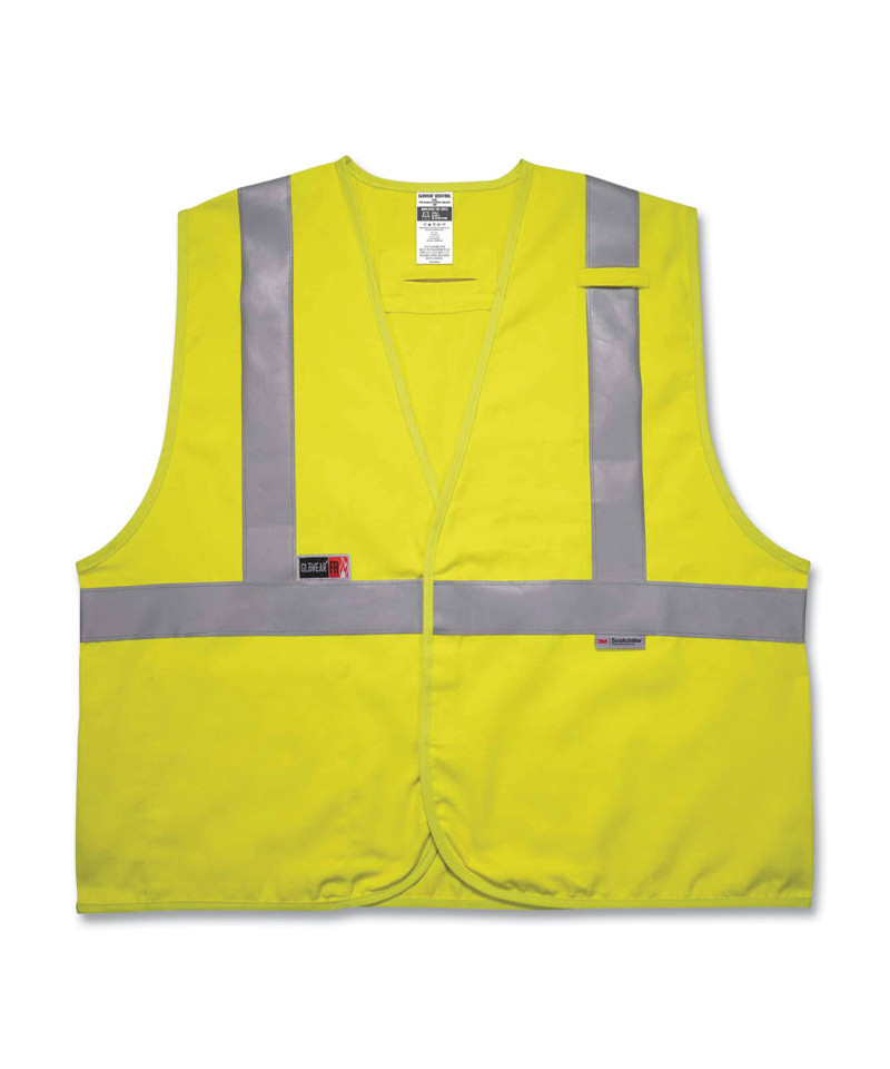 The GloWear 8261FRHL Hi-Vis FR Class 2 Safety Vest is dual FR-compliant to NFPA 2112 and NFPA 70E for protection against flash fire and arc flash hazards. Designed to be worn as part of a complete FR garment system, it is tested and certified to an ATPV 6.6 cal/cm2. Flame-resistant safety vest is made with breathable, moisture-wicking and ANSI-compliant 5.5 oz Westex by Milliken DH material for full protection from flash fire and arc flash. Reflective vest is a Type R Class 2 garment and features 2 3M Scotchlite FR reflective for heightened visibility at night or in low light environments. Features two convenient interior pockets, one open top to fit cell phones, badges, and more and one dual pen pocket. A single flame-resistant radio mic tab and flame-resistant hook and loop front closure designed for easy on/off. This FR high-visibility clothing is ideal PPE for petrochemical, electrical, oil and gas and refinery work.