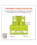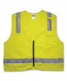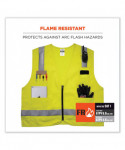 The GloWear 8262FRZ Class 2 FR Surveyor Zipper Vest is FR compliant to NFPA 70E for protection against arc flash hazards. The unique combination of solid front and mesh back makes this flame-resistant safety vest first-of-its-kind in storage and breathability. Designed to be worn as part of a complete fire-resistant (FR) garment system, it is tested and certified to an ATPV 6.6 cal/cm2 (front) and ATPV 4.6 cal/cm2 (back). Made with a solid front of breathable, moisture-wicking and ANSI-compliant 5.5 oz Westex by Milliken DH material for protection against arc flash, and a 5.6 oz Modacrylic mesh back for even more cooling airflow. It also features a 2" 3M Scotchlite FR reflective accents for heightened visibility at night or in low light environments. With four exterior pockets, the front of this surveyor vest provides an abundance of storage. Pockets include two lower flap top pockets, one cell phone pocket and a dual-layer pen pocket, plus a single radio mic tab made of FR body material.