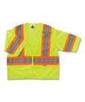 Class 3 two-tone vest is made of mesh fabric. 2 ANSI-compliant reflective set on 3.5 contrasting background for better visibility. One inside pocket for keeping important items close at hand and one radio mic tab. Zipper closure.
