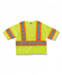 Class 3 two-tone vest is made of mesh fabric. 2 ANSI-compliant reflective set on 3.5 contrasting background for better visibility. One inside pocket for keeping important items close at hand and one radio mic tab. Zipper closure.
