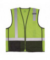 This hi-vis Class 2 mesh safety vest is made of 100% polyester mesh with a black panel across the bottom front to hide dirt, grit and dust to keep the vest looking cleaner longer. This vest features 2" reflective tape for enhanced low-light visibility, plus a lower interior pocket, upper exterior pocket and single mic tab. A zipper closure makes for easy on and off. This vest is available in dual sizes and is designed for a looser fit for wear over shirts, sweatshirts or jackets. This reflective safety vest is ideal for anyone requiring Type R, Class 2 apparel, including road construction, baggage handling and municipalities.