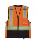 The GloWear 8251HDZ Class 2 Two-Tone Hi-Vis Safety Vest is an ANSI-compliant vest designed with a 100% polyester mesh back, solid polyester material on the front and a black panel across the bottom front to hide dirt, grit and dust to keep the vest looking cleaner longer. This hi-vis vest features 2" reflective tape for enhanced low-light visibility and features a zipper closure makes for easy on and off. This vest features three interior pockets with reinforced corners-one upper chest hook and loop pocket for cell phones, one large lower hook and loop pocket for tablets and a smaller lower hook and loop pocket for storage of pens, small tools and more. The exterior features two lower flap pockets and a dual-layer chest pocket with a clear window ID holder and a pocket on the backside to store pens, markers, boxcutters and keys. Dual mic tabs, two grommet holes and one D-ring are strategically placed for convenient access. Machine washable.