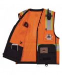 The GloWear 8251HDZ Class 2 Two-Tone Hi-Vis Safety Vest is an ANSI-compliant vest designed with a 100% polyester mesh back, solid polyester material on the front and a black panel across the bottom front to hide dirt, grit and dust to keep the vest looking cleaner longer. This hi-vis vest features 2" reflective tape for enhanced low-light visibility and features a zipper closure makes for easy on and off. This vest features three interior pockets with reinforced corners-one upper chest hook and loop pocket for cell phones, one large lower hook and loop pocket for tablets and a smaller lower hook and loop pocket for storage of pens, small tools and more. The exterior features two lower flap pockets and a dual-layer chest pocket with a clear window ID holder and a pocket on the backside to store pens, markers, boxcutters and keys. Dual mic tabs, two grommet holes and one D-ring are strategically placed for convenient access. Machine washable.