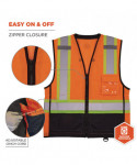 This two-tone hi-vis safety vest is designed with a 100% polyester mesh back, solid polyester material on the front and a black panel across the bottom front to hide dirt, grit and dust to keep the vest looking cleaner longer. This hi-vis vest features 2" reflective tape for enhanced low-light visibility and features a zipper closure makes for easy on and off.