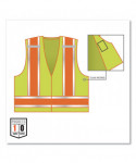 ANSI-compliant, two-tone public saftey vest with a breakaway design. Solid poly front with mesh back. Reflective strip set on 4.5 contrasting background for extra visibility. Features one multi-division inside pocket and dual radio mic tabs.