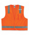 The GloWear 8249Z Surveyors Vest is an ANSI 107 Type R, Class 2 economy vest with a 3.6 oz polyester solid front and breathable 3.3 oz polyester mesh back. This hi-vis vest features 2" reflective tape for enhanced low-light visibility. With two interior and two exterior pockets, including a cell phone chest pocket, this vest provides ample storage for pens, notebooks, tablets and more. A single mic tab allows convenient radio access, and a zipper closure makes for easy on and off.