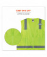 ANSI 107 Type R, Class 2 economy vest with a 3.6 oz polyester solid front and breathable 3.3 oz polyester mesh back. This hi-vis vest features 2" reflective tape for enhanced low-light visibility. With two interior and two exterior pockets, including a cell phone chest pocket, this vest provides ample storage for pens, notebooks, tablets and more. A single mic tab allows convenient radio access, and a zipper closure makes for easy on and off.