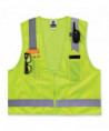 The GloWear 8249Z Surveyors Vest is an ANSI 107 Type R, Class 2 economy vest with a 3.6 oz polyester solid front and breathable 3.3 oz polyester mesh back. This hi-vis vest features 2" reflective tape for enhanced low-light visibility. With two interior and two exterior pockets, including a cell phone chest pocket, this vest provides ample storage for pens, notebooks, tablets and more. A single mic tab allows convenient radio access, and a zipper closure makes for easy on and off.