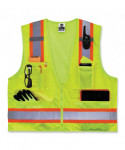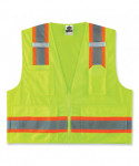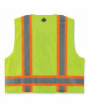 The GloWear 8248Z Class 2 Surveyors Vest has a solid front, mesh back and zipper closure. Two-tone design. Lots of pockets, two inside and four outside pockets. What's not to love? Features 2 ANSI-compliant reflective. Reflective is set on 3.5 contrasting background. Dual radio mic tabs.
