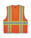 The GloWear 8246Z Mesh Two-Tone Safety Vest is an ANSI 107 Type R, Class 2 economy vest made of 3.3 oz polyester mesh. This hi-vis vest features 2" reflective tape set on a 3.5 contrasting mesh background and reflective piping for enhanced visibility. Built for storage, this vest has two interior and four exterior pockets, a clear ID badge holder and dual radio mic tabs. A zipper closure makes for easy on and off.