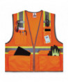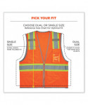 ANSI 107 Type R, Class 2 economy vest is made of 3.3 oz polyester mesh. This hi-vis vest features 2" reflective tape set on a 3.5 contrasting mesh background and reflective piping for enhanced visibility. Built for storage, this vest has two interior and four exterior pockets, a clear ID badge holder and dual radio mic tabs. A zipper closure makes for easy on and off.