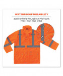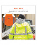 The GloWear 8365 Hi-Vis Rain Jacket is a Type R, Class 3 jacket that offers waterproof, breathable protection against the elements. Made with a breathable polyester shell that keeps water out while letting moisture escape to keep you cool and comfortable working in the worst conditions. This reflective rain jacket has 2 ANSI compliant 3M Scotchlite Reflective material on the chest and arms for added visibility at night or in low-light conditions. The inset hood can be tucked away when not needed. This waterproof work jacket offers comfortable protection against the elements for those working in road construction, utilities, construction, emergency response, airline, railway or survey crews.