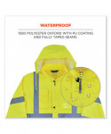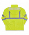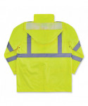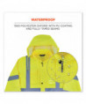 The GloWear 8366 Lightweight Hi-Vis Rain Jacket is designed with waterproof materials (150D polyester oxford with a polyurethane (PU) coating) and fully taped seams for reliable protection in the face of stormy weather. Compliant to ANSI/ISEA 107, Type R Class 3 with reflective tape for enhanced low-light visibility. This lightweight reflective rain jacket easily fits over workwear without sacrificing mobility. Fully taped seams are bonded to the jacket to keep water from sneaking in, while a vented cape-back allows heat and moisture to escape for added breathability. An attached drawstring hood can be stowed away when not needed. Reflective tape on chest and arms adds visibility at night or in low-light conditions. It's the perfect lightweight waterproof work jacket for those working in road construction, utilities, construction, emergency response, airline, railway or survey crews.