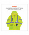 This hi-vis rain jacket is designed with waterproof materials (150D polyester oxford with a polyurethane (PU) coating) and fully taped seams for reliable protection in the face of stormy weather. Compliant to ANSI/ISEA 107, Type R Class 3 with reflective tape for enhanced low-light visibility. This lightweight reflective rain jacket easily fits over workwear without sacrificing mobility. Fully taped seams are bonded to the jacket to keep water from sneaking in, while a vented cape-back allows heat and moisture to escape for added breathability. An attached drawstring hood can be stowed away when not needed. Reflective tape on chest and arms adds visibility at night or in low-light conditions. It's the perfect lightweight waterproof work jacket for those working in road construction, utili