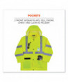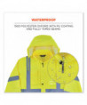 This hi-vis rain jacket is designed with waterproof materials (150D polyester oxford with a polyurethane (PU) coating) and fully taped seams for reliable protection in the face of stormy weather. Compliant to ANSI/ISEA 107, Type R Class 3 with reflective tape for enhanced low-light visibility. This lightweight reflective rain jacket easily fits over workwear without sacrificing mobility. Fully taped seams are bonded to the jacket to keep water from sneaking in, while a vented cape-back allows heat and moisture to escape for added breathability. An attached drawstring hood can be stowed away when not needed. Reflective tape on chest and arms adds visibility at night or in low-light conditions. It's the perfect lightweight waterproof work jacket for those working in road construction, utili
