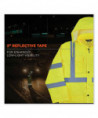 This hi-vis rain jacket is designed with waterproof materials (150D polyester oxford with a polyurethane (PU) coating) and fully taped seams for reliable protection in the face of stormy weather. Compliant to ANSI/ISEA 107, Type R Class 3 with reflective tape for enhanced low-light visibility. This lightweight reflective rain jacket easily fits over workwear without sacrificing mobility. Fully taped seams are bonded to the jacket to keep water from sneaking in, while a vented cape-back allows heat and moisture to escape for added breathability. An attached drawstring hood can be stowed away when not needed. Reflective tape on chest and arms adds visibility at night or in low-light conditions. It's the perfect lightweight waterproof work jacket for those working in road construction, utili