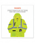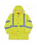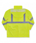 The GloWear 8366 Lightweight Hi-Vis Rain Jacket is designed with waterproof materials (150D polyester oxford with a polyurethane (PU) coating) and fully taped seams for reliable protection in the face of stormy weather. Compliant to ANSI/ISEA 107, Type R Class 3 with reflective tape for enhanced low-light visibility. This lightweight reflective rain jacket easily fits over workwear without sacrificing mobility. Fully taped seams are bonded to the jacket to keep water from sneaking in, while a vented cape-back allows heat and moisture to escape for added breathability. An attached drawstring hood can be stowed away when not needed. Reflective tape on chest and arms adds visibility at night or in low-light conditions. It's the perfect lightweight waterproof work jacket for those working in road construction, utilities, construction, emergency response, airline, railway or survey crews.