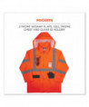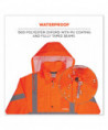 This hi-vis rain jacket is designed with waterproof materials (150D polyester oxford with a polyurethane (PU) coating) and fully taped seams for reliable protection in the face of stormy weather. Compliant to ANSI/ISEA 107, Type R Class 3 with reflective tape for enhanced low-light visibility. This lightweight reflective rain jacket easily fits over workwear without sacrificing mobility. Fully taped seams are bonded to the jacket to keep water from sneaking in, while a vented cape-back allows heat and moisture to escape for added breathability. An attached drawstring hood can be stowed away when not needed. Reflective tape on chest and arms adds visibility at night or in low-light conditions. It's the perfect lightweight waterproof work jacket for those working in road construction, utili