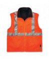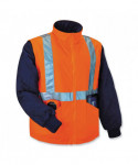 Class 3 4-in-1 jacket for Fall, Winter and Spring. The only jacket you'll need all year. Weatherproof 300D oxford polyester outer shell with breathable PU coating that resists water and wind, for dry comfort all day. Inner jacket with 100 g 3M Thinsulate lining. Inner jacket zips out and sleeves zip off to create Class 2 thermal vest. Features 2 ANSI-compliant reflective stripes for nighttime visibility. Other features include inset hood with drawstring and stoppers, two external front pockets with snap flaps, cell phone chest poacket and dual mic tabs for clipping radios.